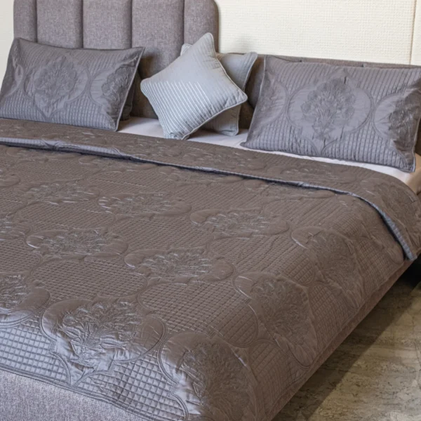 Lotus Grey Quilted Bedspread (Set of 4)